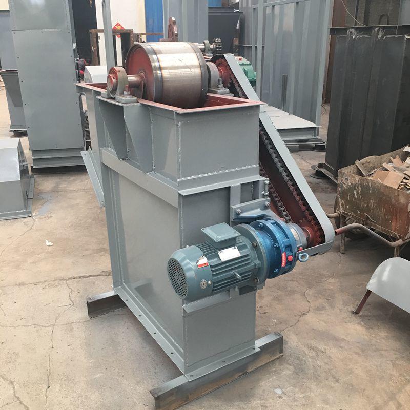 炭黑密封不揚塵垂直鏈條式斗式提升機的牽引構(gòu)件:1.橡膠帶用螺釘和彈性墊片固接在帶子口,帶比斗寬35~40mm,一般膠帶輸送溫度不超過60℃的物料,耐熱膠帶可以輸送達到150℃的物料。2.鏈條:單鏈條固接在料斗后壁上;雙鏈與料斗兩側(cè)相連。鏈?zhǔn)教嵘龣C當(dāng)料斗寬度為160~250mm時采用單鏈,當(dāng)料斗為320~630mm時采用雙鏈,主要缺點是鏈節(jié)之間磨損大,增加檢修次數(shù)。3.鏈輪:斗式提升機上的傳動鏈輪。鏈輪用以與節(jié)鏈環(huán)或纜索上節(jié)距準(zhǔn)確的塊體相嚙合,是一種實心或帶輻條的齒輪,與滾子鏈嚙合以傳遞運動。