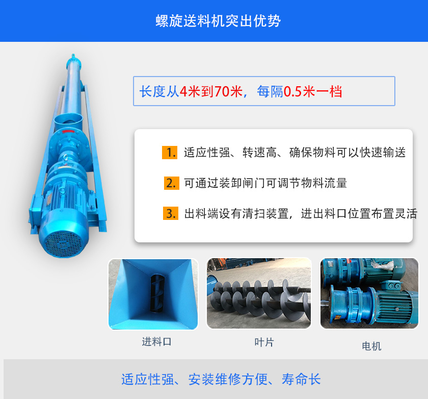 一、螺旋給料機(jī)堵料:1、合理挑選螺旋給料機(jī)的各技術(shù)參數(shù),如慢速螺旋輸送機(jī)轉(zhuǎn)速不能太大。