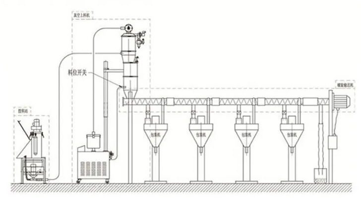 無塵投料站是利用負(fù)壓集塵的中轉(zhuǎn)裝置,適用于中轉(zhuǎn)物料在生產(chǎn)過程中的開袋和投料。能夠?qū)⑽锪舷葍?chǔ)存,后輸送,與集塵系統(tǒng)配合使用,有效避免粉塵飛揚(yáng)。料倉錐形部分配有振動(dòng)器,有助于物料的流動(dòng)??稍诹蟼}內(nèi)安裝篩分系統(tǒng),防止結(jié)塊物料堵塞下料口及輸送管道。根據(jù)用戶需求而設(shè)計(jì),將投料時(shí)產(chǎn)生的物料塵粉等和相關(guān)設(shè)備與人體 進(jìn)行有效隔離,從而在風(fēng)機(jī)的負(fù)壓工況下將塵粉吸到過濾系統(tǒng)中,使 氣體和物料分離,當(dāng)物料集聚多時(shí),因自重落入料倉。