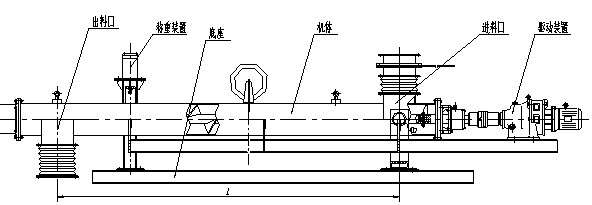 7、在卸料端蓋板上開設(shè)一防堵活門。發(fā)生堵塞時,由于物料堆積,頂開防堵門,同時通過行程開關(guān)切斷電源。