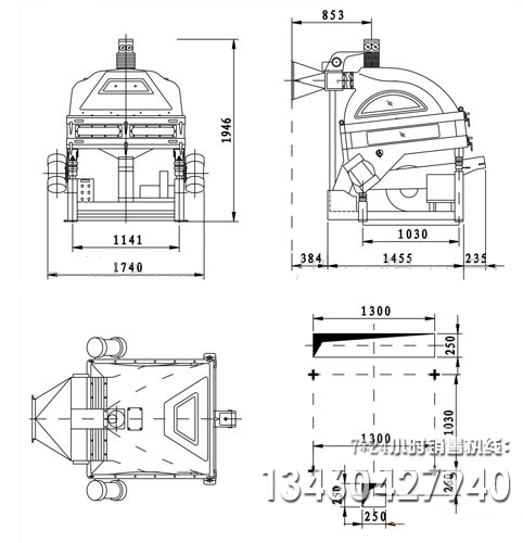 吹式比重去石機 1.進料口,2.進料斗;3.進料調(diào)節(jié)手輪;4.導風板, 5.出料口.6.進風調(diào)節(jié)裝置;7.風機;8.偏心傳動機構(gòu);9.出石口;10.精選室;11.吊桿;12.勻風板: 13.去石篩面;14.緩沖勻流板吸式比重去石機其結(jié)構(gòu)與吹式基本相同,只是自身不帶風機,在去石篩面上裝有氣密良好的吸風罩及吸風管,與加工廠風網(wǎng)的風機相接,作業(yè)時塵土不外揚,因而使用較多。為簡化結(jié)構(gòu)和便于制作,有些國家的吸式比重去石機的去石篩面多采用直徑為l毫米的鋼絲編織而成,篩體用彈簧支承.由振動電機驅(qū)動。