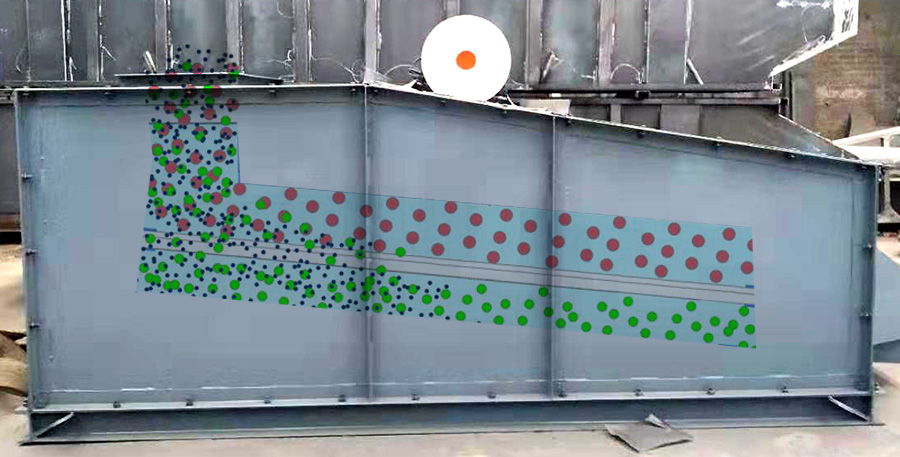 物料從水泥篩上部進(jìn)料口落入篩網(wǎng)上,篩網(wǎng)框與振動(dòng)電機(jī)固定在一起,所以篩網(wǎng)隨著振動(dòng)電機(jī)的振動(dòng)作近似圓的軌跡運(yùn)動(dòng)。物料在篩網(wǎng)上被不斷地拋起,并向前下方移動(dòng)。物料中小于網(wǎng)孔尺寸的粉料及顆粒就穿過篩網(wǎng)落下。而大于網(wǎng)孔尺寸的雜物則從篩面流經(jīng)排渣口排出,從而完成篩分工作。減振彈簧是為了減少該機(jī)對地面的振動(dòng)力。護(hù)網(wǎng)是為了防止安裝、維修時(shí)的工具或其它物件落入料倉中。