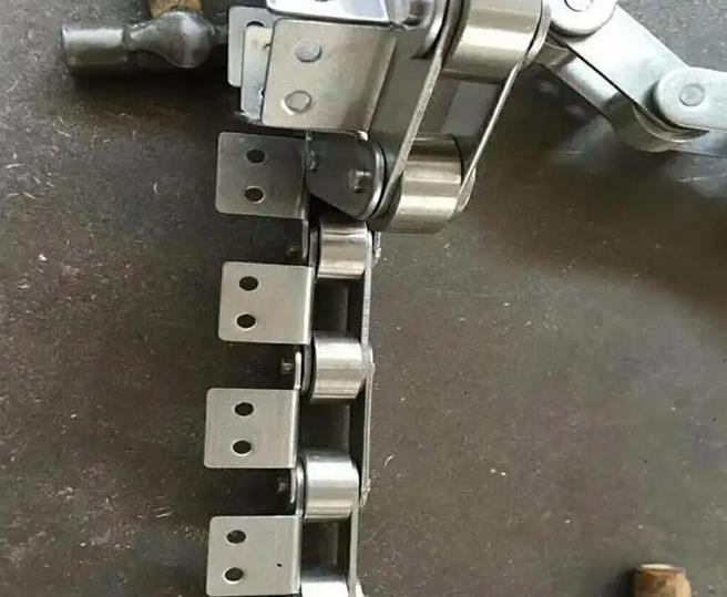 鏈板輸送機的鏈板與鏈條之間是通過輸送鏈上特殊形狀的鏈條鏈板連接的輸送用鏈條因為需要用在各式各樣的輸送設(shè)備中,為方便輸送設(shè)備與鏈條之間的連接,輸送用鏈條的側(cè)鏈板形狀就不再僅僅限于普通傳動用套筒滾子鏈的平直側(cè)鏈板,而是帶上了一系列的附件常見的輸送鏈可以有多級附件,