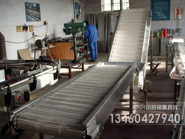 網(wǎng)帶輸送機(jī)簡(jiǎn)介  網(wǎng)帶輸送機(jī)可分為網(wǎng)帶式,網(wǎng)鏈?zhǔn)絻煞N,也叫網(wǎng)帶機(jī)。輸送帶的材質(zhì)有:碳鋼、不銹鋼、熱塑鏈,根據(jù)您的產(chǎn)品的需要可選取不同寬度、不同形狀的鏈板來完成平面輸送、平面轉(zhuǎn)彎、提升、下降等要求。是根據(jù)一定的線路上連續(xù)輸送物料的物料搬運(yùn)機(jī)械,又稱連續(xù)輸送機(jī),可分為網(wǎng)帶式和網(wǎng)鏈?zhǔn)?。輸送機(jī)可進(jìn)行水平、傾斜和垂直輸送,也可組成空間輸送線路,輸送線路一般是固定的。輸送機(jī)輸送能力大,運(yùn)距長(zhǎng),還可在輸送過程中同時(shí)完成若干工藝操作.